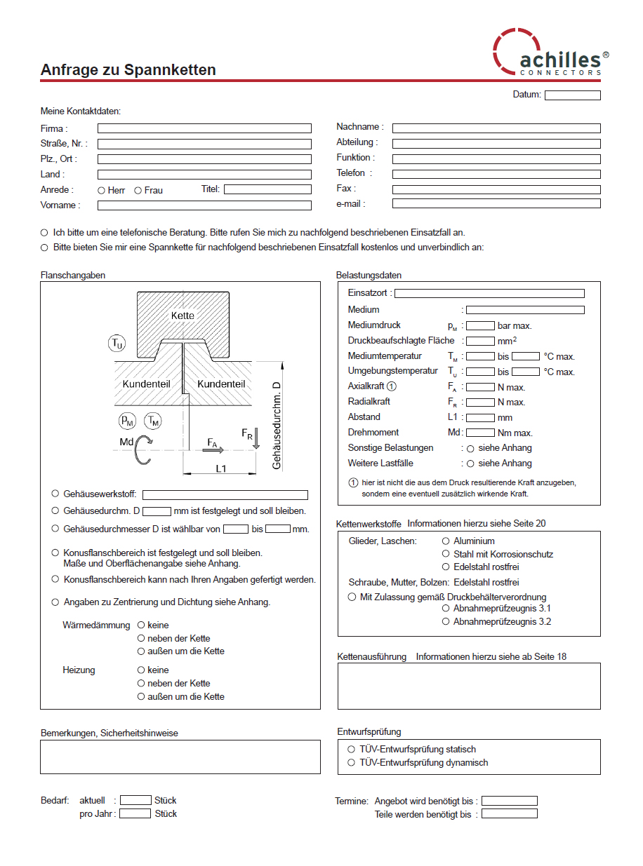 Sie können für Ihre Anfrage auch die unten hinterlegten Formulare ausfüllen und an uns senden. mail@achilles-connectors.de.