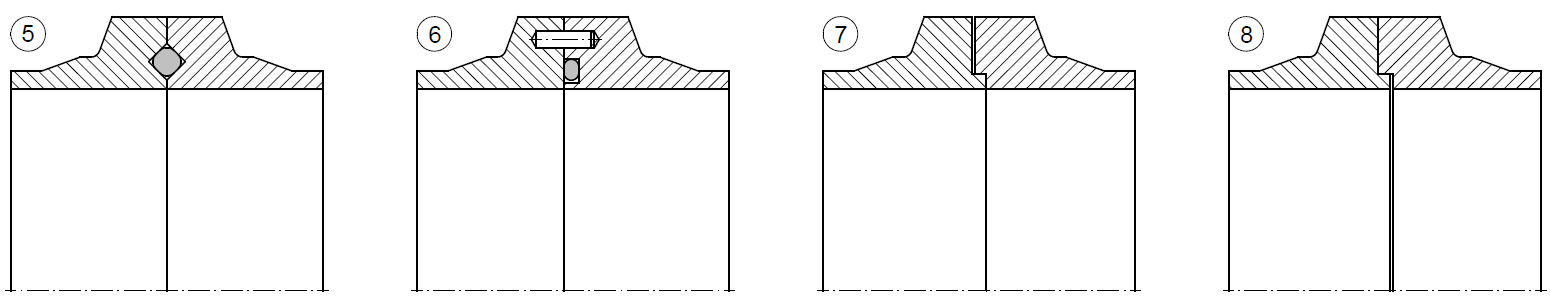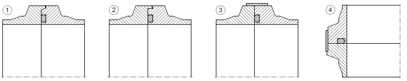 Die Art der Zentrierung und der Dichtung wird in Absprache mit dem Kunden entschieden. Die Flansche müssen zueinander zentriert sein und nach dem Verspannen stabil aufliegen. Hier einige Beispiele: