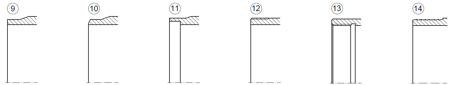 DIN 2559. Die Länge der Flansche wird nach Kundenangaben gefertigt. Dabei ist auf eine ausreichende Länge zu achten, damit die Schweiß-hitze nicht zum Verzug der Flansche führen kann. Andere Flanschenden sind lieferbar. Hier einige Beispiele: