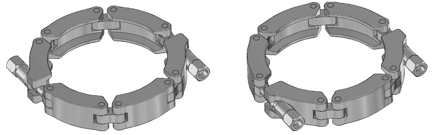 Zwei Grundformen sind möglich, SL und SS. Bauform SL steht für Spannglied an Lasche, d.h. die Glieder werden durch eine Lasche verbunden. Dadurch kann sich jedes Glied separat auf den Konusflanschen ausrichten. Ketten dieser Bauweise sind auch in der Handhabung flexibler als Ketten der Bauform SS. Sie sind die Standardform für fast alle spanend gefertigten Ketten. Bauform SS steht für Spannglied an Spannglied, d.h. die Glieder werden direkt miteinander verbunden. Durch die fehlenden Laschen haben diese Ketten einen längeren Wangentraganteil am Umfang. Das kann für kleine Durchmesser und hohe Belastungen vorteilhaft sein.