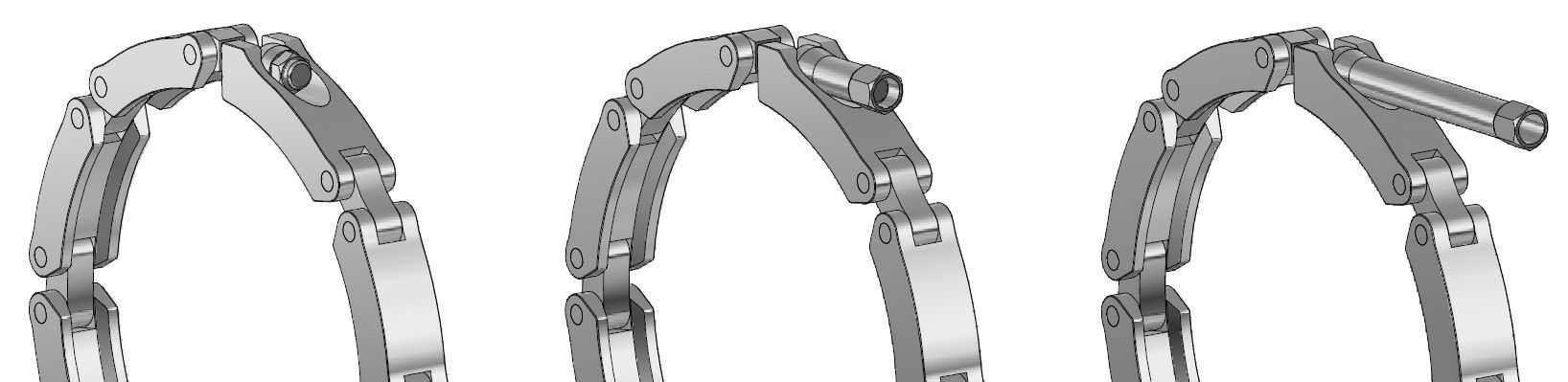 Sollen die Kettenenden im geöffneten Zustand seitlich nicht herunterhängen kann der Öffnungswinkel begrenzt werden.