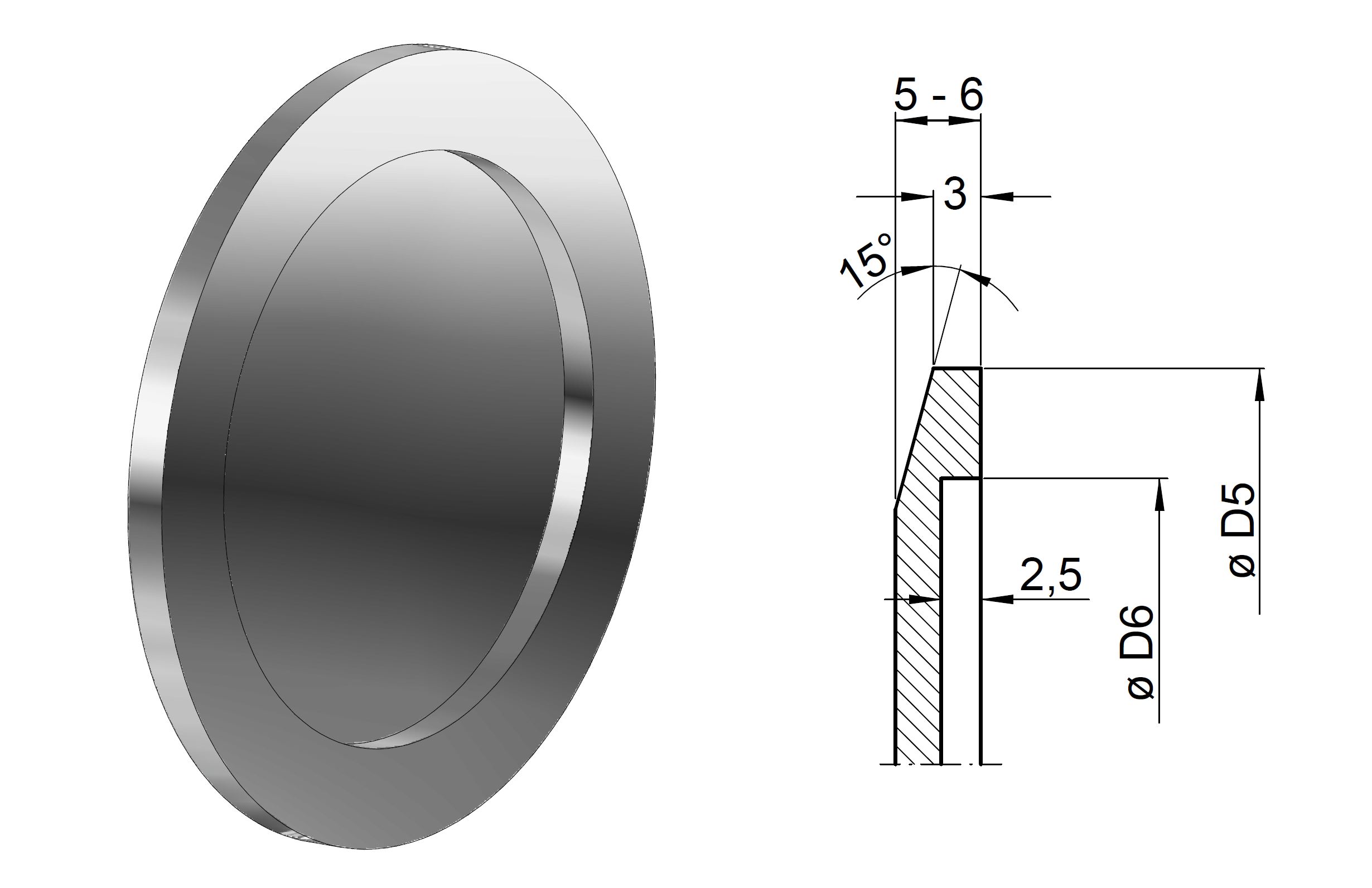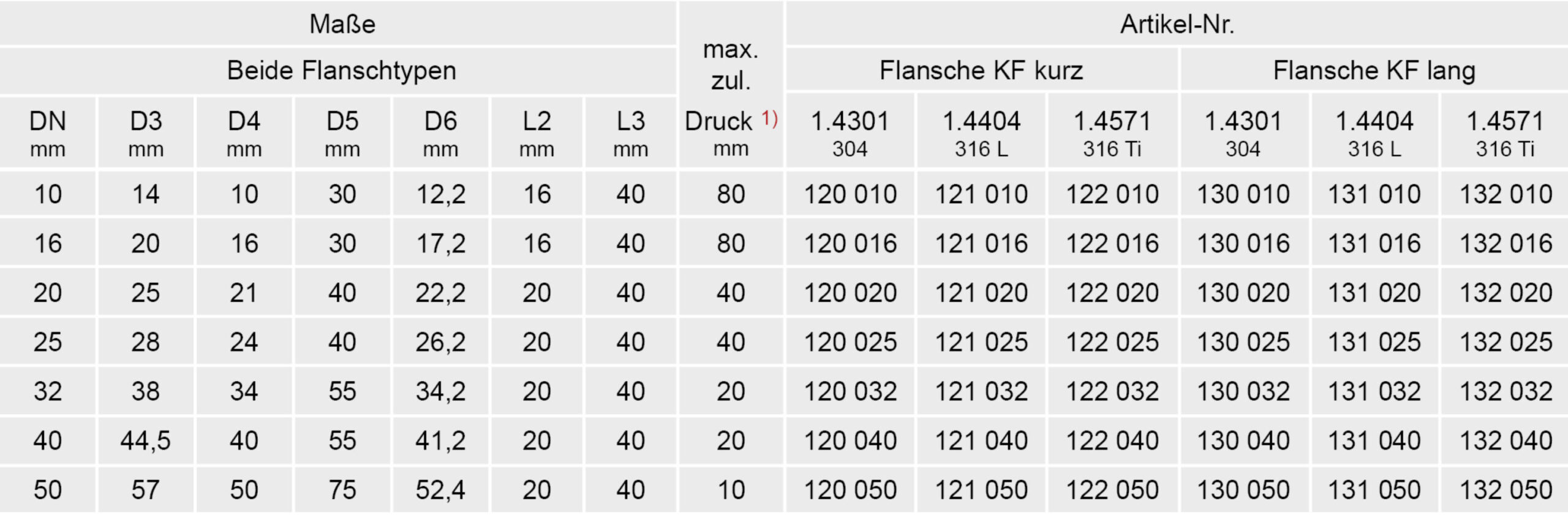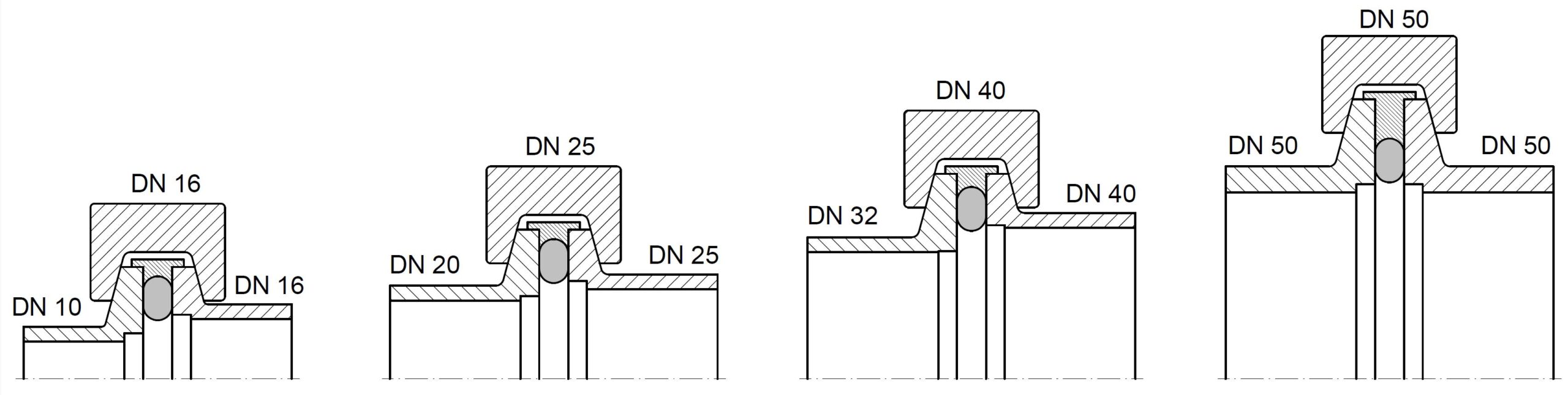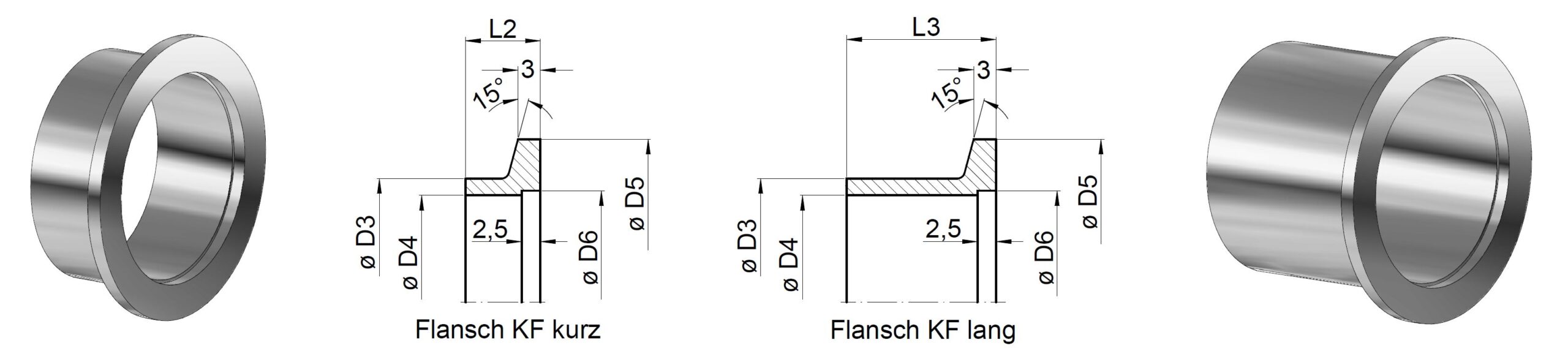 Von den ersten 6 Größen sind jeweils zwei Flansche im Außenbereich maßgleich (Flanschaußenø D5 u. Flanschkopfbreite 3 mm). So können