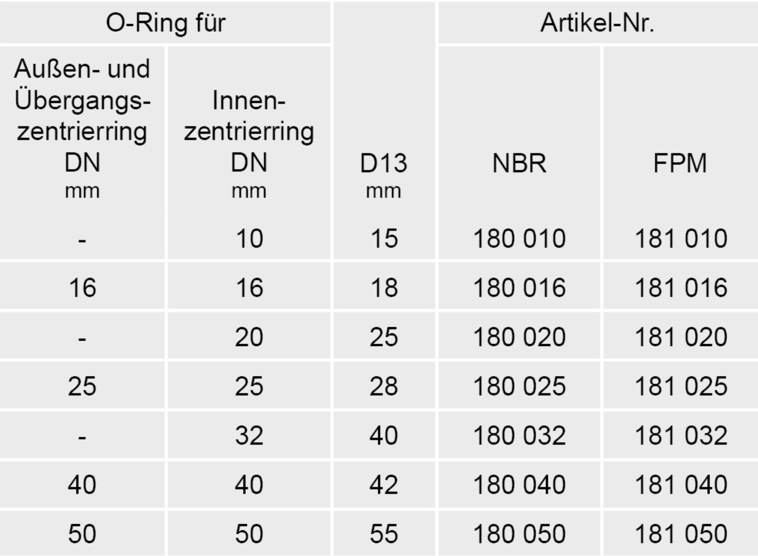 Innenzentrierringe: -200 bis +400°C. Innenzentrierringe aus anderen Werkstoffen sind lieferbar. O-Ringe separat bestellen